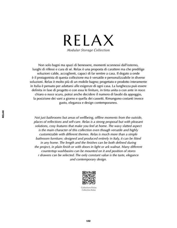 soluzioni. Relax è molto più di un mobile bagno; progettato e prodotto interamente