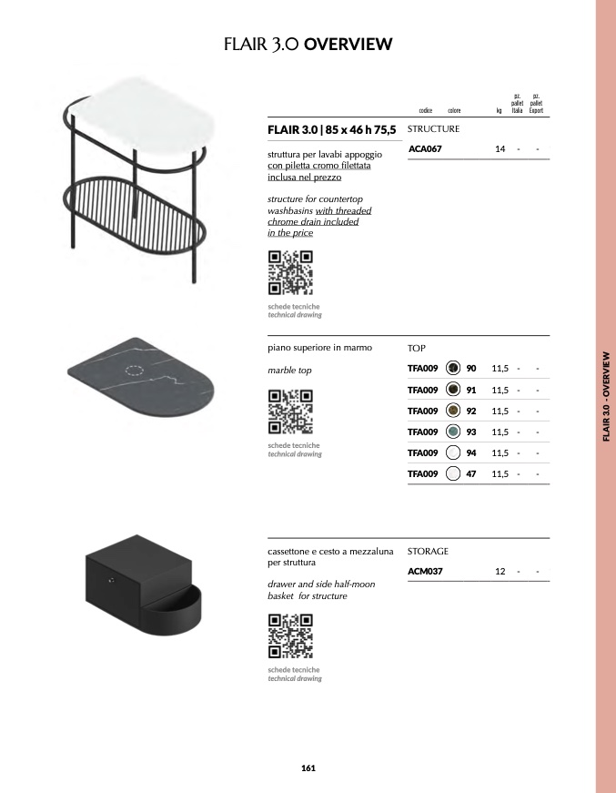 struttura per lavabi appoggio