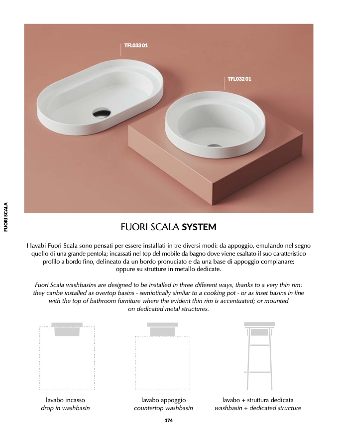 Fuori Scala washbasins are designed to be installed in three different ways, thanks to a very thin rim: