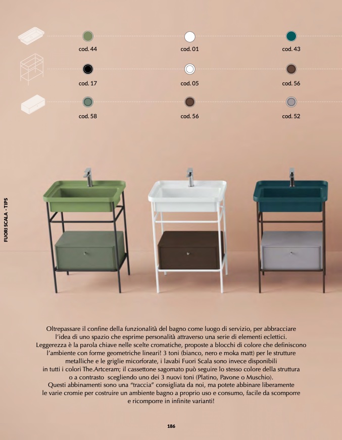 metalliche e le griglie micorforate, i lavabi Fuori Scala sono invece disponibili