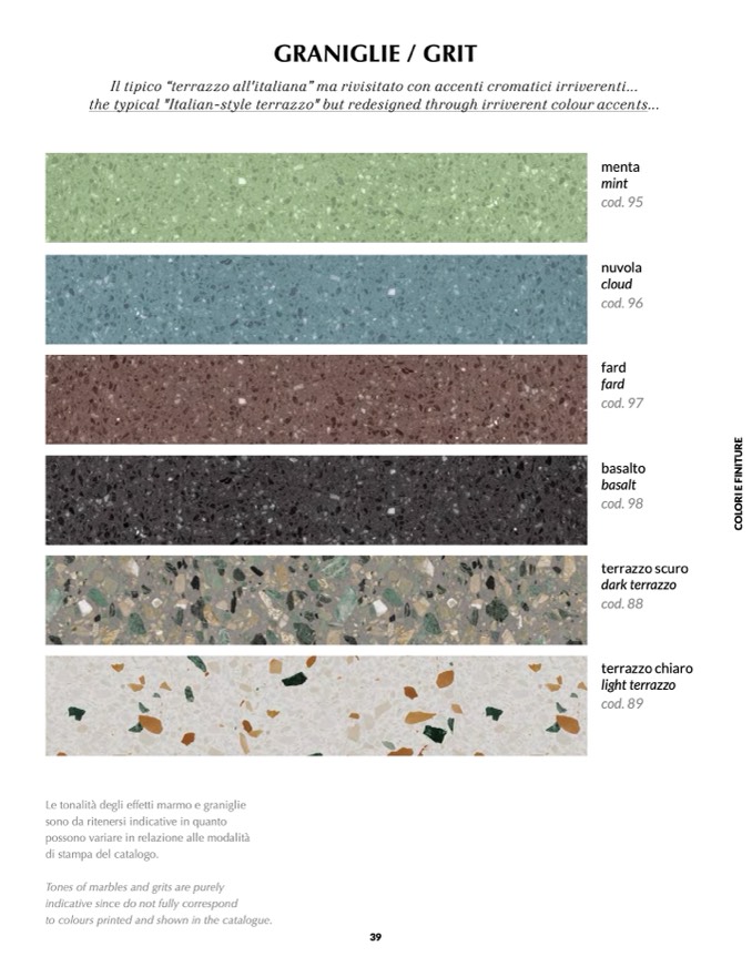 the typical "Italian-style terrazzo" but redesigned through irriverent colour accents...
