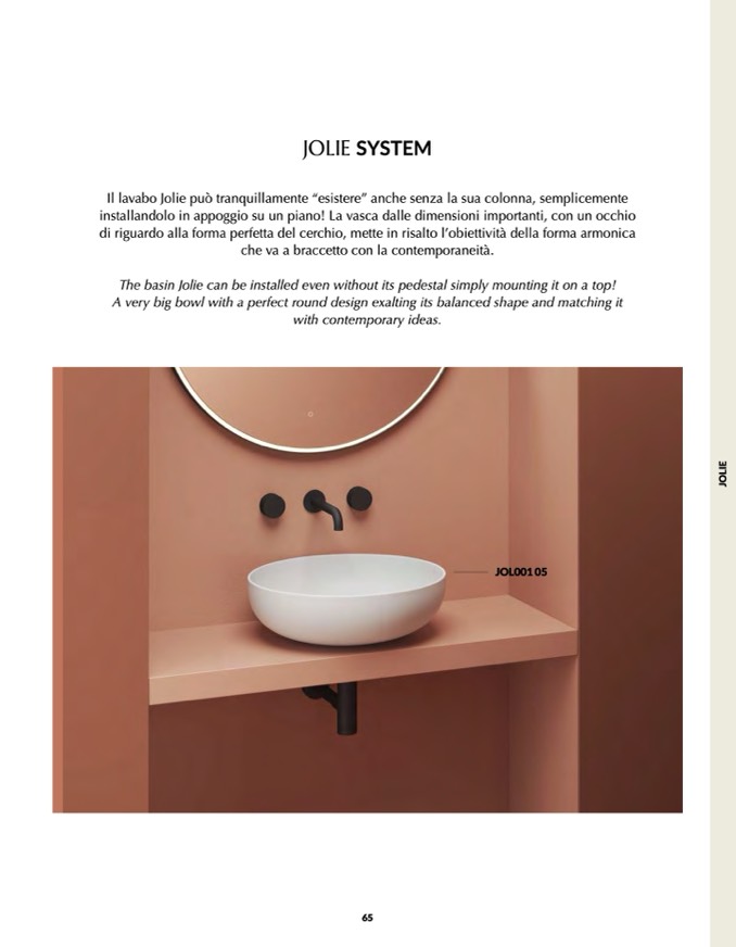 The basin Jolie can be installed even without its pedestal simply mounting it on a top!