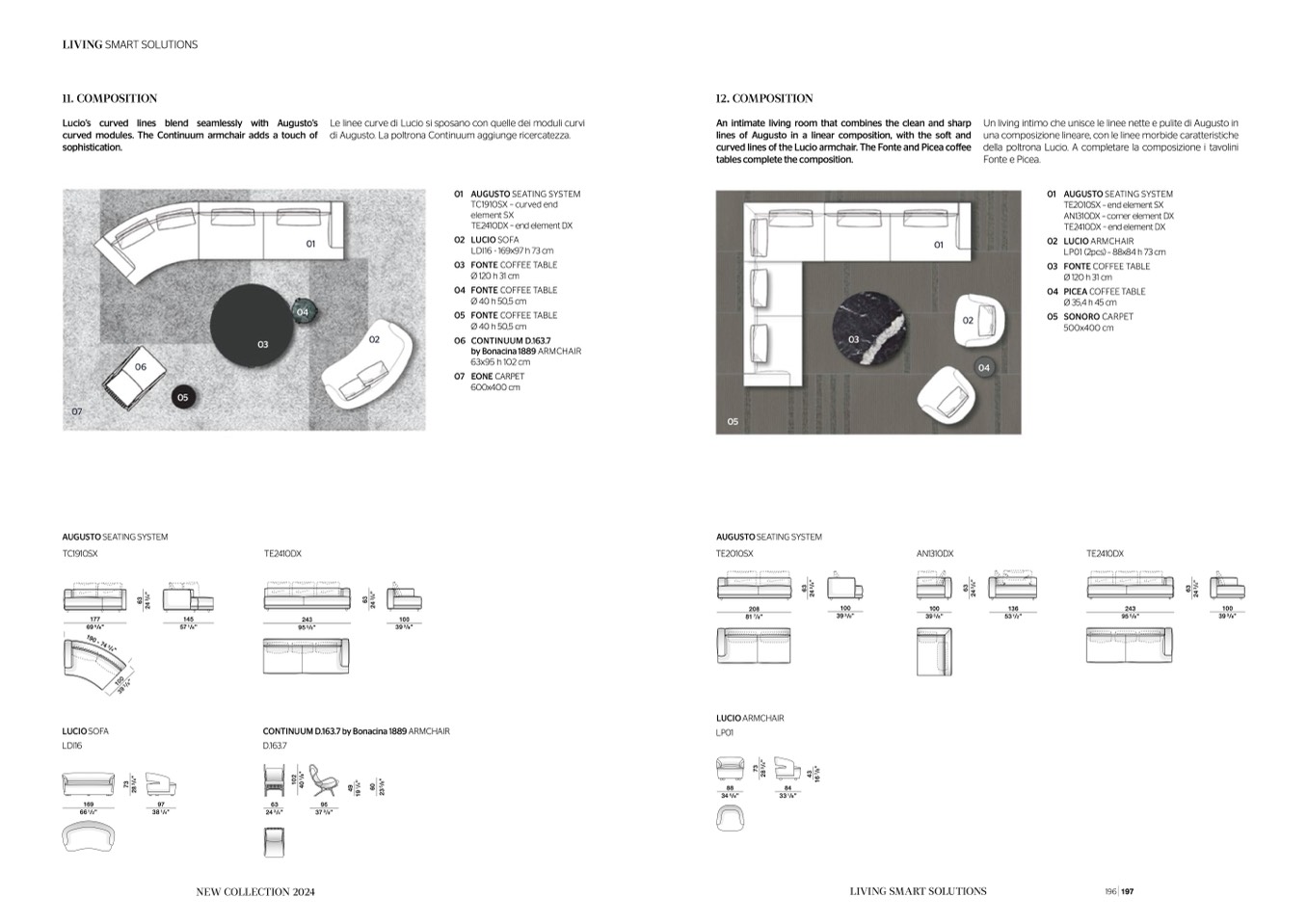 curved lines of the Lucio armchair. The Fonte and Picea coffee