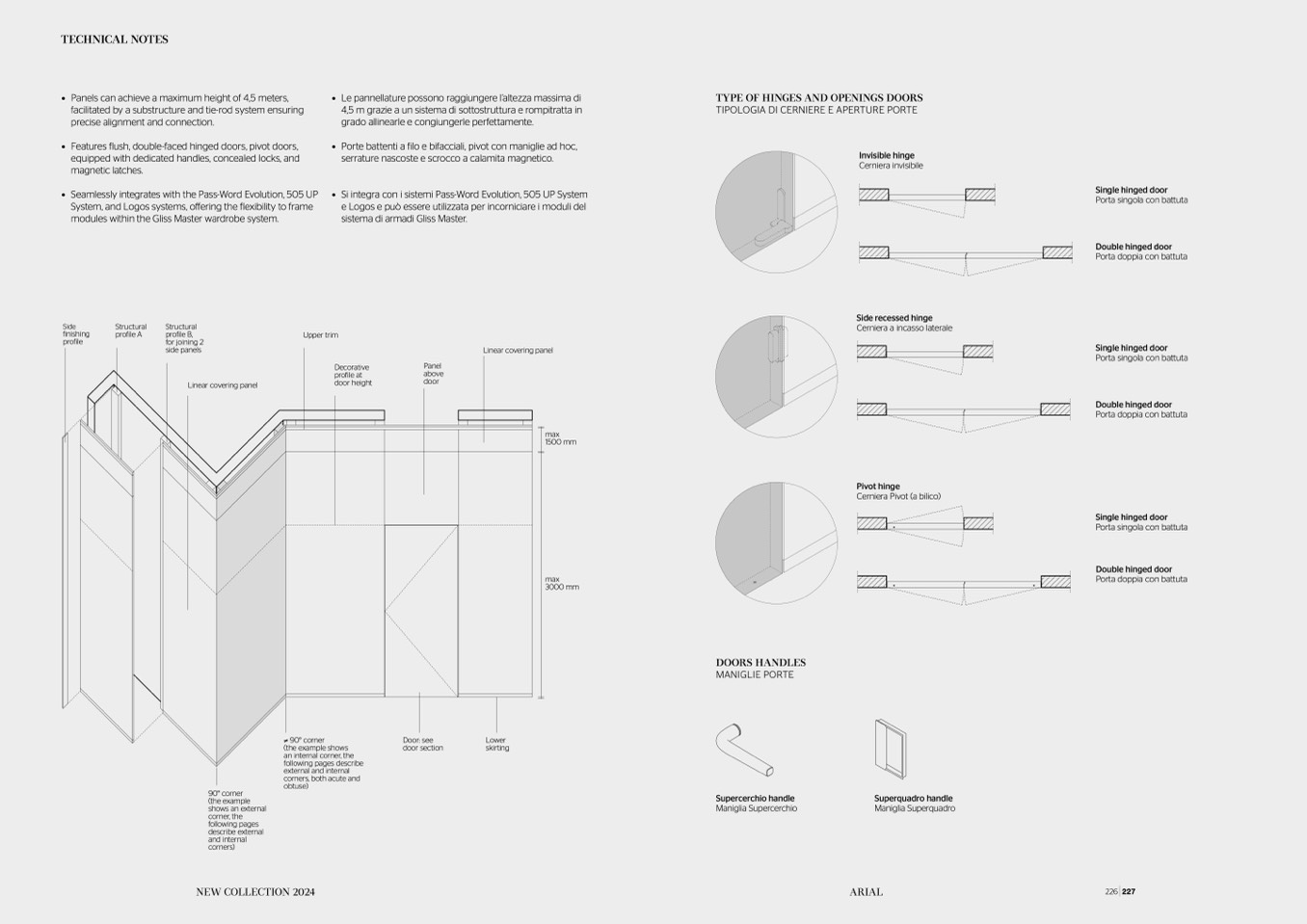 • Features flush, double-faced hinged doors, pivot doors,
