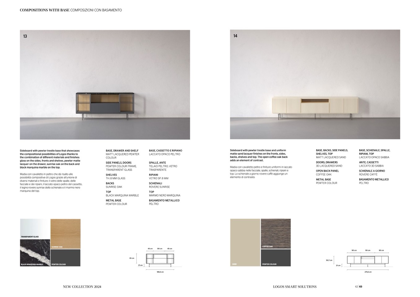 facciate e dei ripiani, il laccato opaco peltro del cassetto,