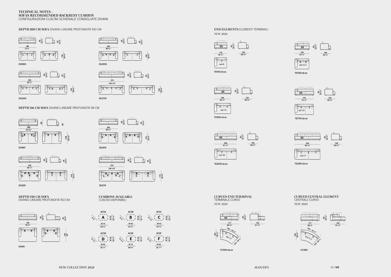 DEPTH 116 CM SOFA DIVANO LINEARE PROFONDITÀ 116 CM