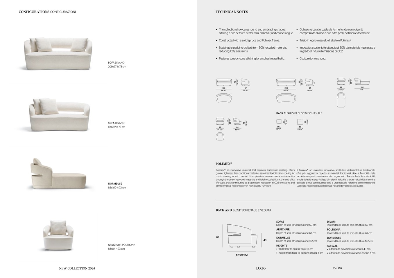 • Collezione caratterizzata da forme tonde e avvolgenti,
