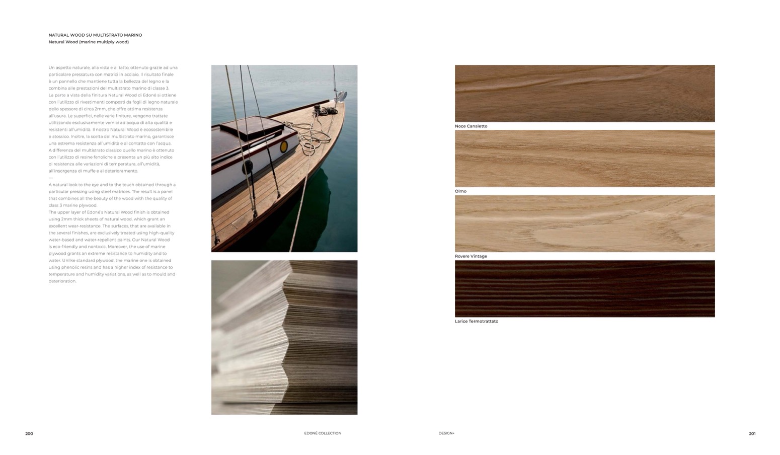 The upper layer of Edoné’s Natural Wood finish is obtained