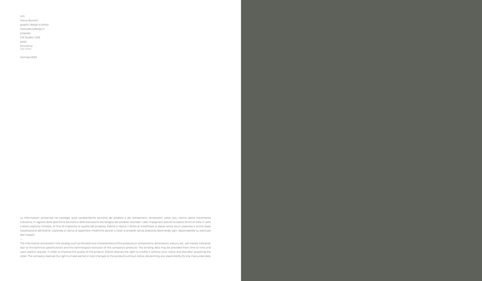 Le informazioni contenute nel catalogo, quali caratteristiche tecniche dei prodotti o dei componenti, dimensioni, colori, ecc., hanno valore meramente