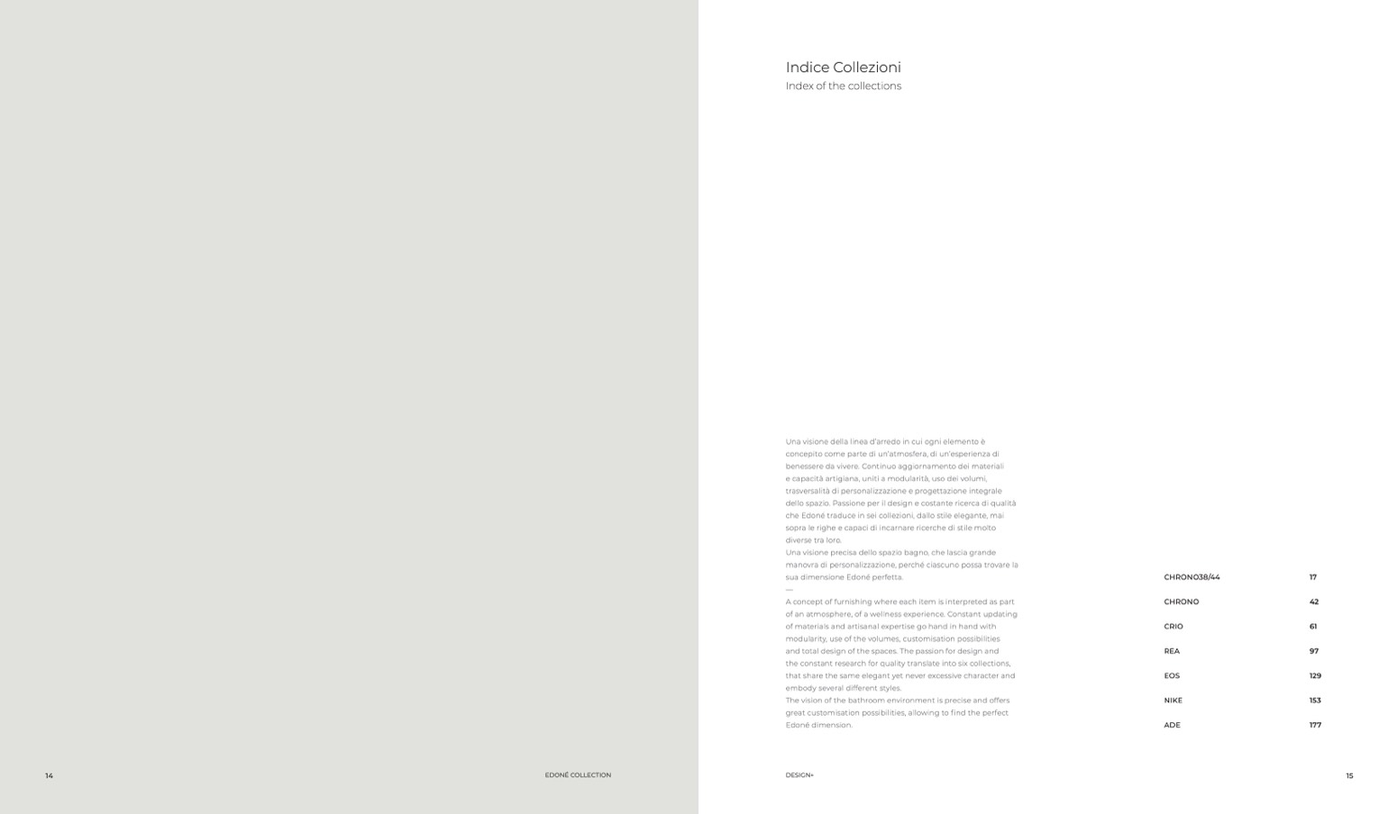 che Edoné traduce in sei collezioni, dallo stile elegante, mai