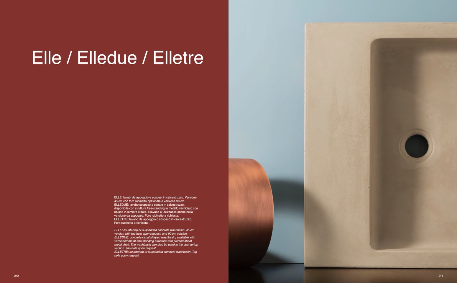 ELLETRE: lavabo da appoggio o sospeso in calcestruzzo.