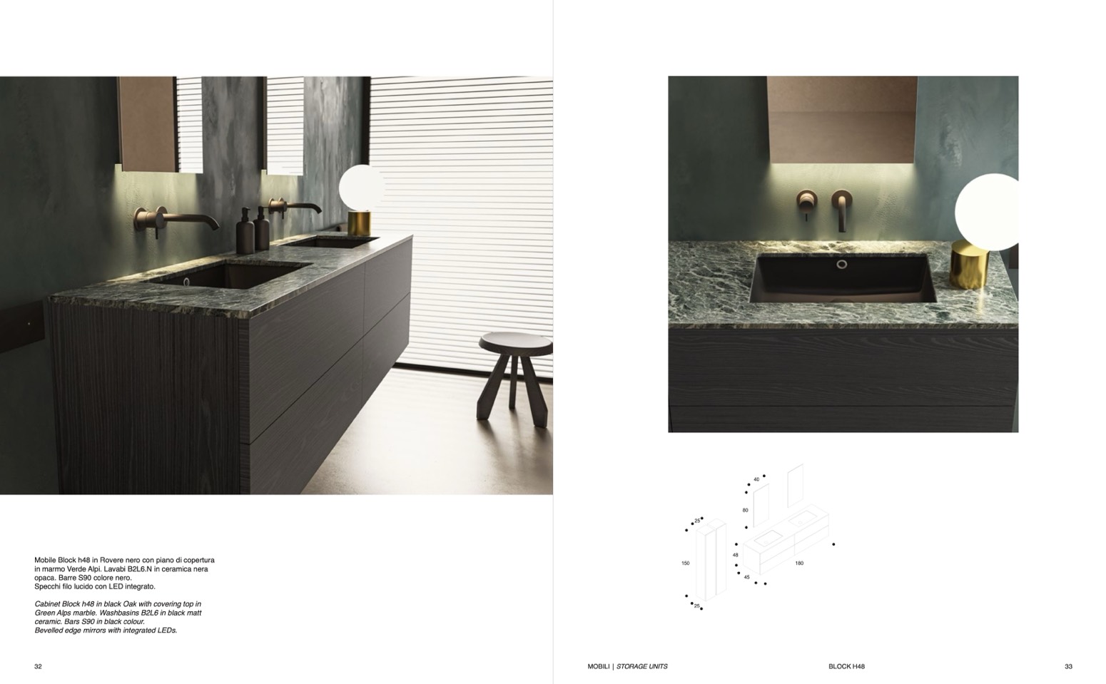 in marmo Verde Alpi. Lavabi B2L6.N in ceramica nera
