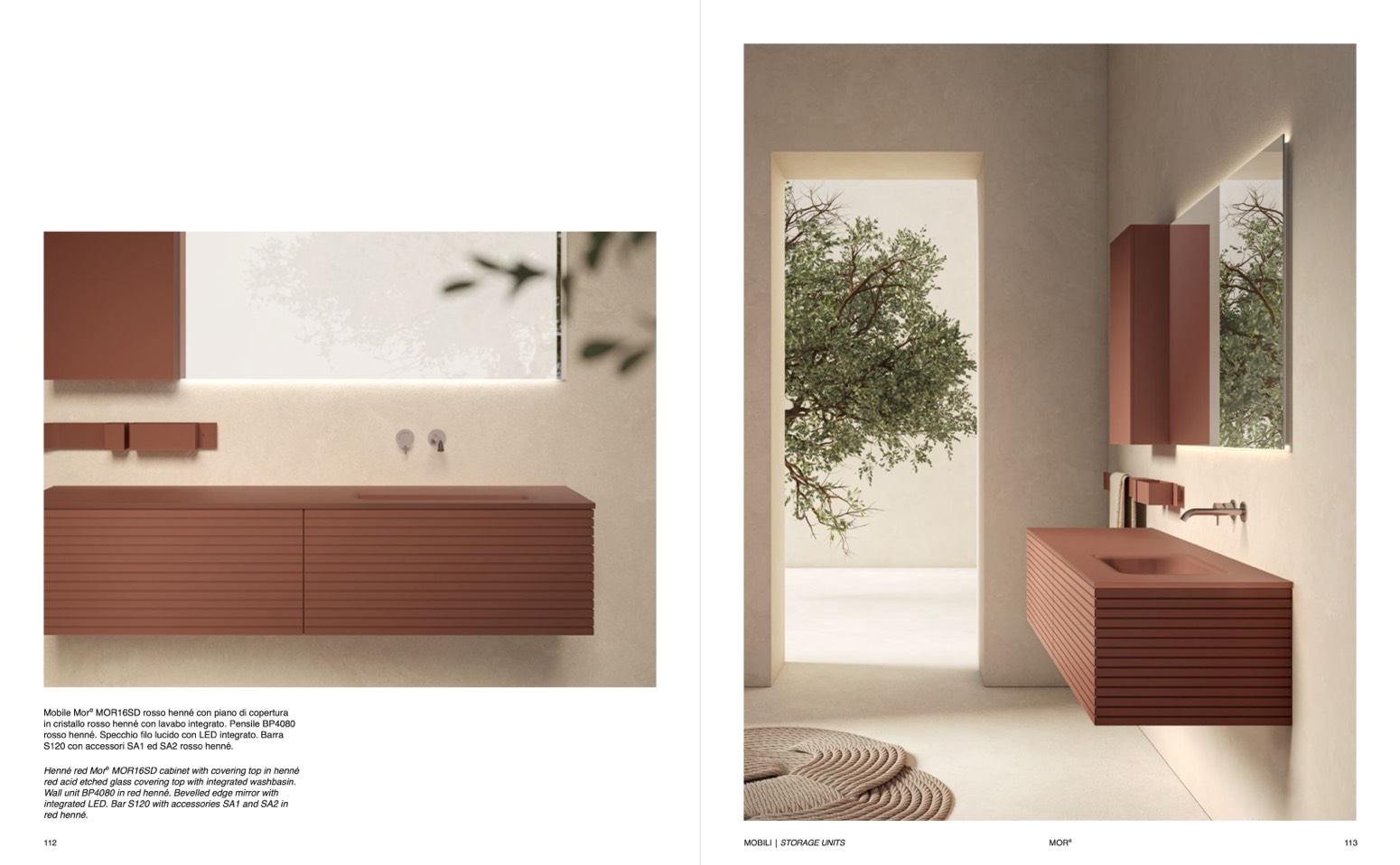 in cristallo rosso henné con lavabo integrato. Pensile BP4080