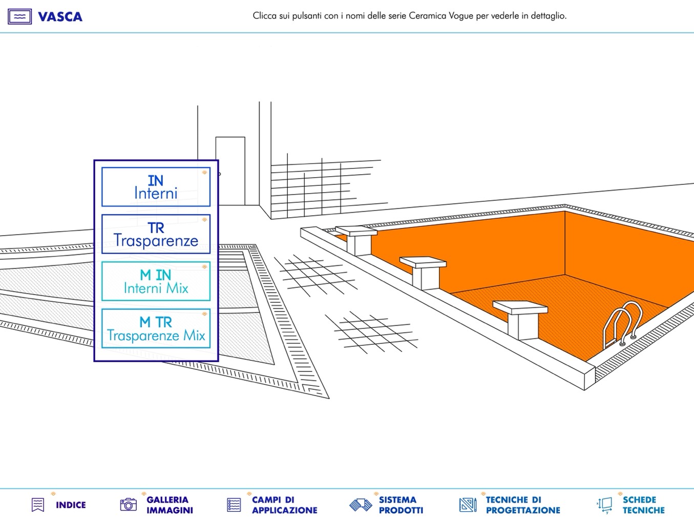 Clicca sui pulsanti con i nomi delle serie Ceramica Vogue per vederle in dettaglio.