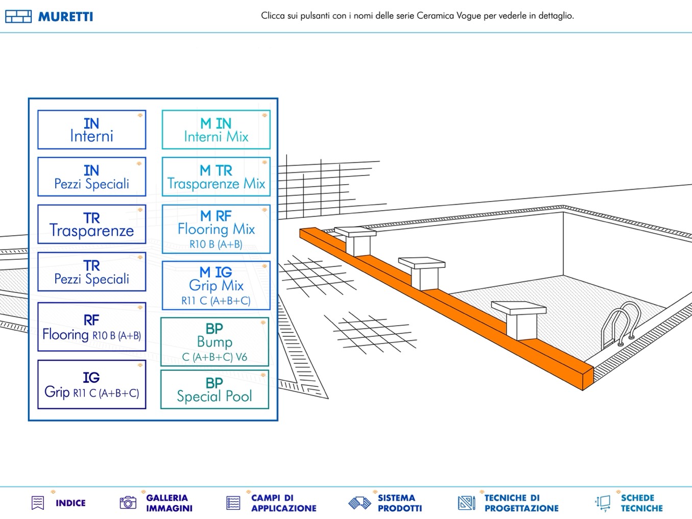Clicca sui pulsanti con i nomi delle serie Ceramica Vogue per vederle in dettaglio.