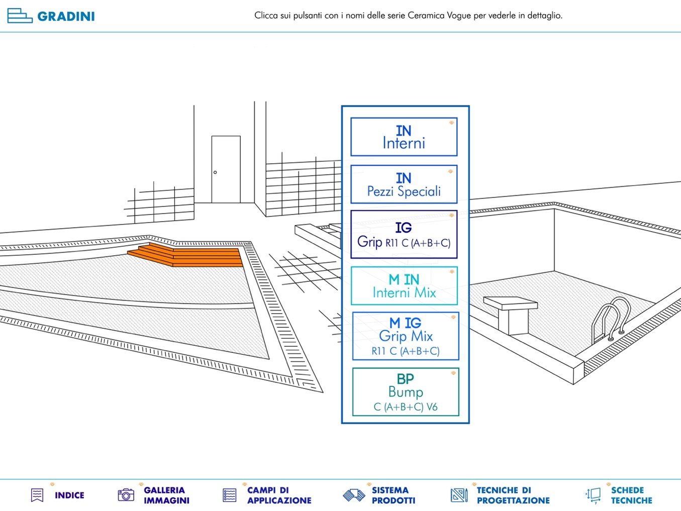 Clicca sui pulsanti con i nomi delle serie Ceramica Vogue per vederle in dettaglio.