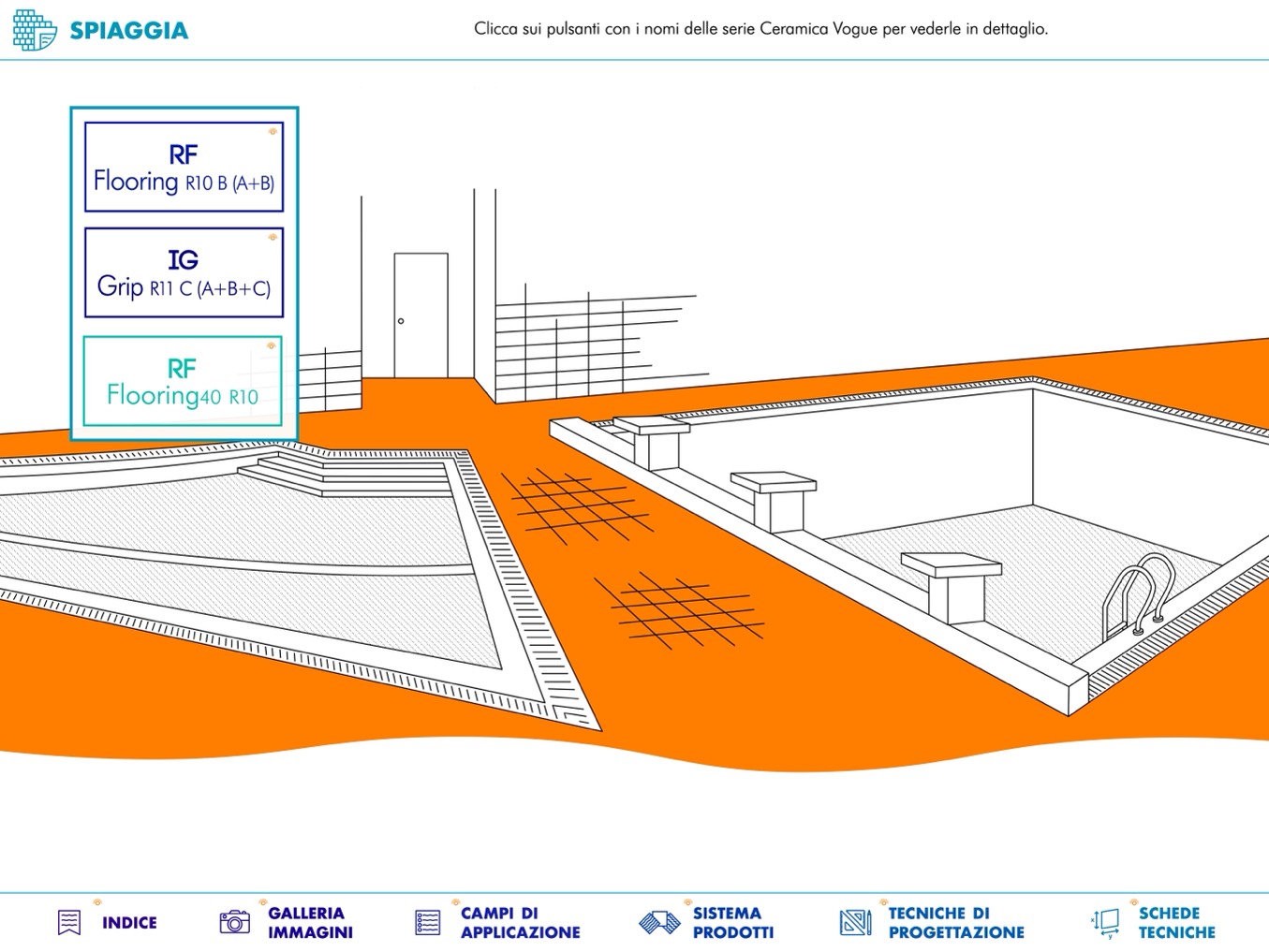 Clicca sui pulsanti con i nomi delle serie Ceramica Vogue per vederle in dettaglio.
