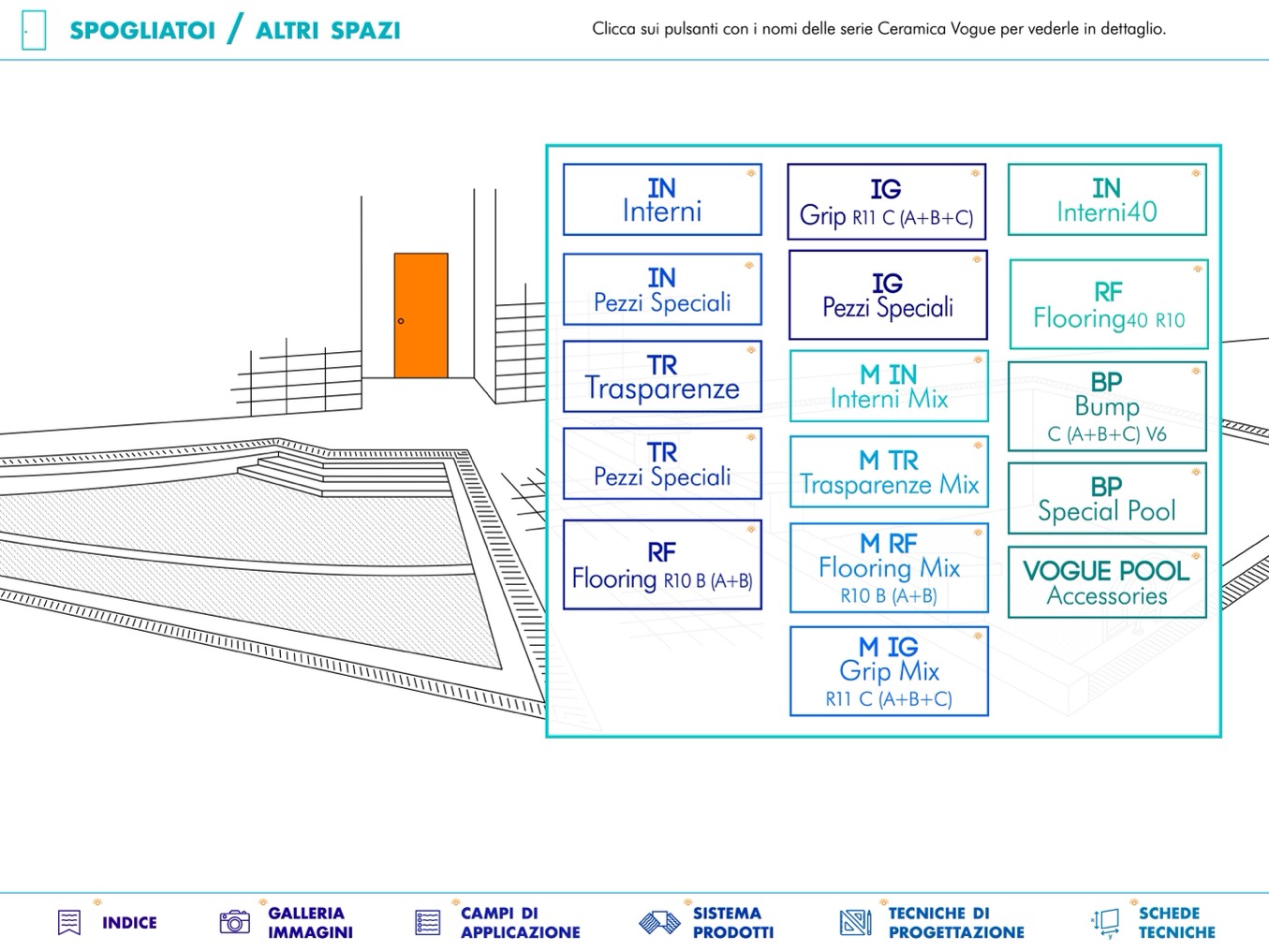 Clicca sui pulsanti con i nomi delle serie Ceramica Vogue per vederle in dettaglio.