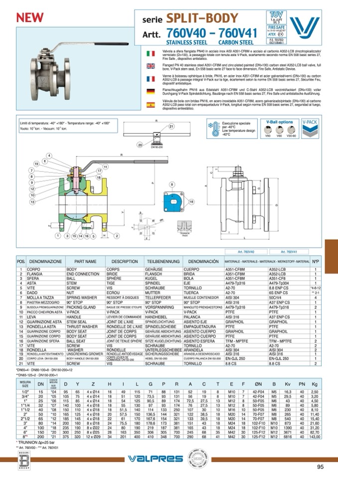 Limiti di temperatura: -40° +180° - Temperature range: -40° +180°