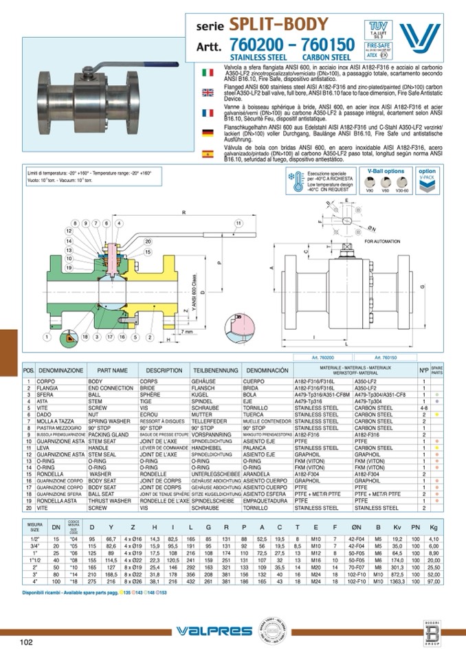 Limiti di temperatura: -20° +160° - Temperature range: -20° +160°