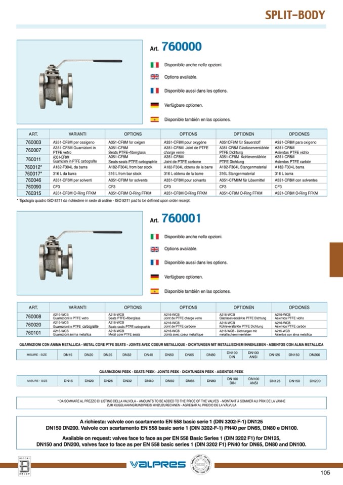 GUARNIZIONI CON ANIMA METALLICA - METAL CORE PTFE SEATS - JOINTS AVEC COEUR METALLIQUE - DICHTUNGEN MIT METALLISCHEM INNENLEBEN - ASIENTOS CON ALMA METALLICA