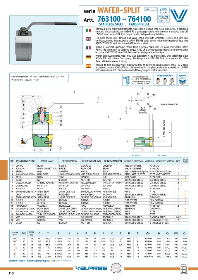 EN 558 basic series 101. Fire Safe e dotata di dispositivo antistatico.