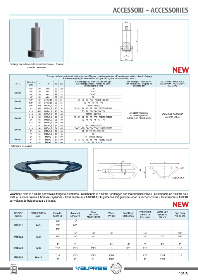 Prolunga per isolamento termico/coibentazione - Thermal protection extension - Extension pour isolation de calorifugeage