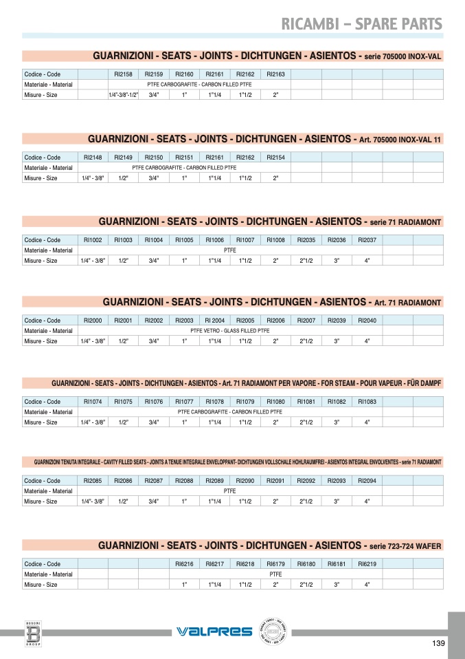 GUARNIZIONI - SEATS - JOINTS - DICHTUNGEN - ASIENTOS - serie 705000 INOX-VAL