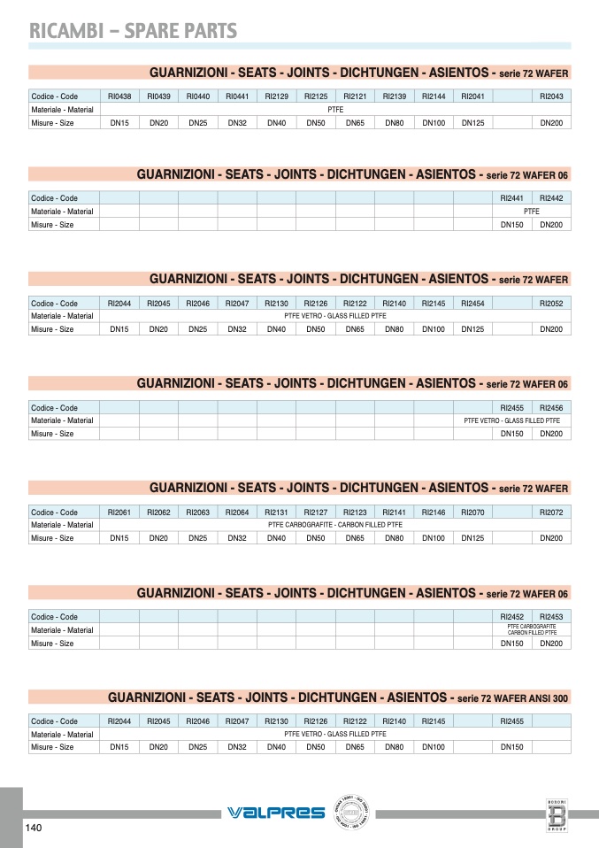 GUARNIZIONI - SEATS - JOINTS - DICHTUNGEN - ASIENTOS - serie 72 WAFER
