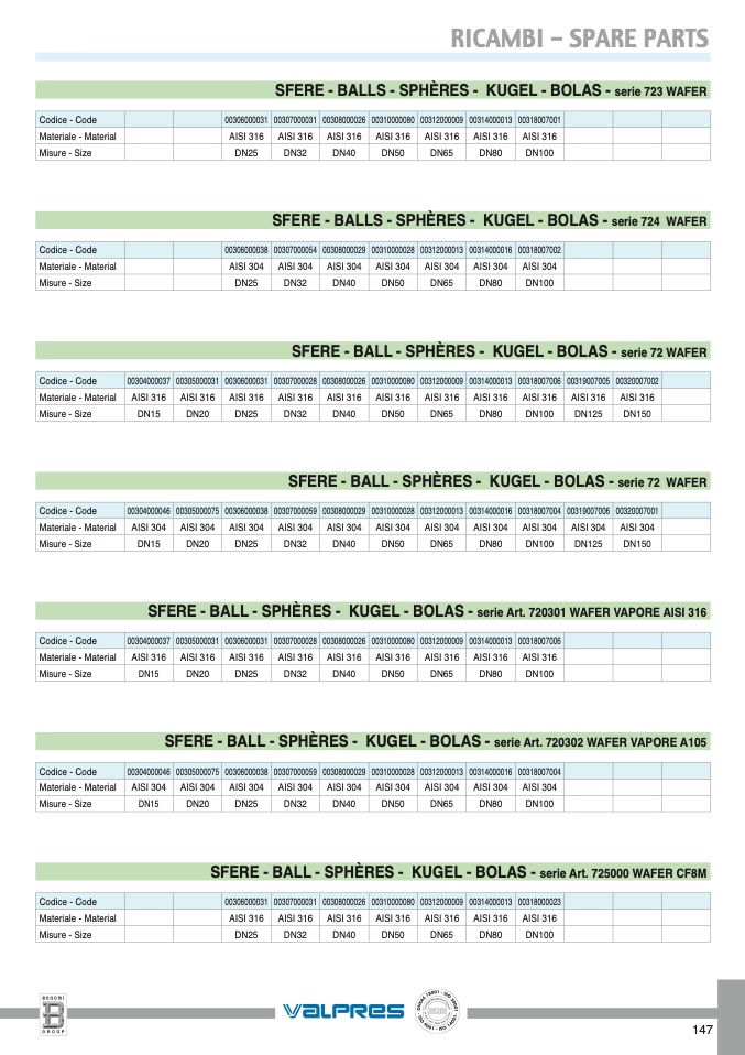 SFERE - BALL - SPHÈRES - KUGEL - BOLAS - serie Art. 725000 WAFER CF8M