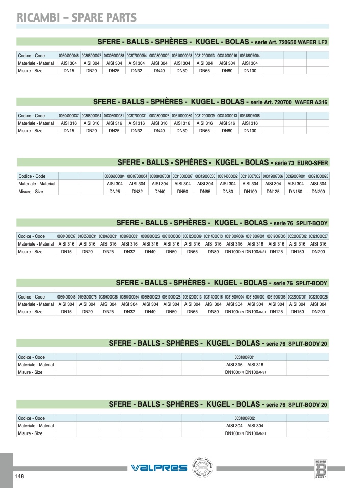 SFERE - BALLS - SPHÈRES - KUGEL - BOLAS - serie 76 SPLIT-BODY