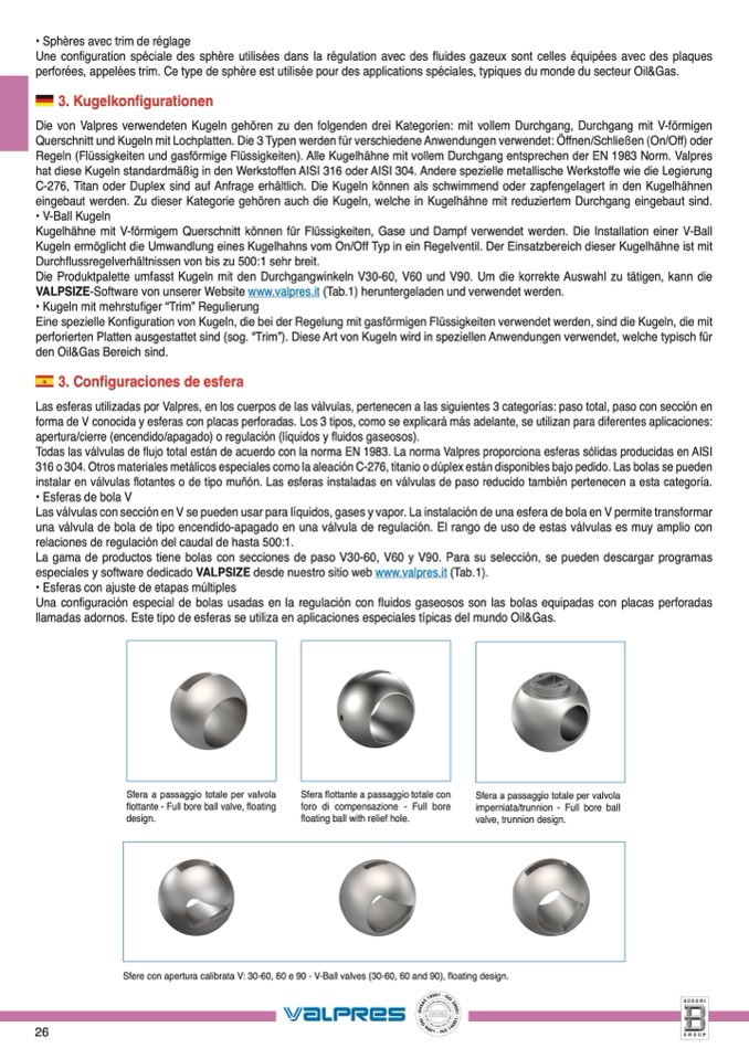 Todas las válvulas de flujo total están de acuerdo con la norma EN 1983. La norma Valpres proporciona esferas s