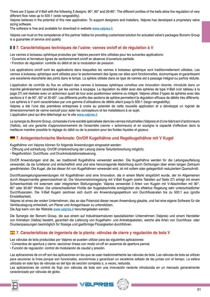 (Valbia), est une garantie d’approvisionnement de l’ensemble (vanne + actionneurs) et en souligne la capacité d’effectuer dans la