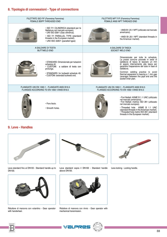 Leva standard fino al DN100 - Standard handle up to