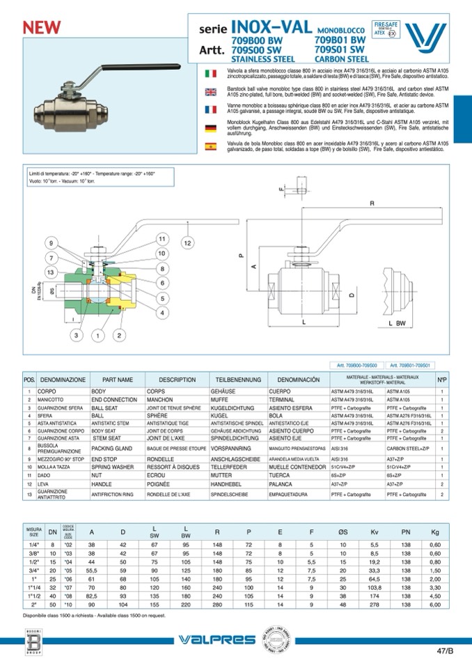 vollem durchgang, Anschweissenden (BW) und Einsteckschweissenden (SW), Fire Safe, antistatische