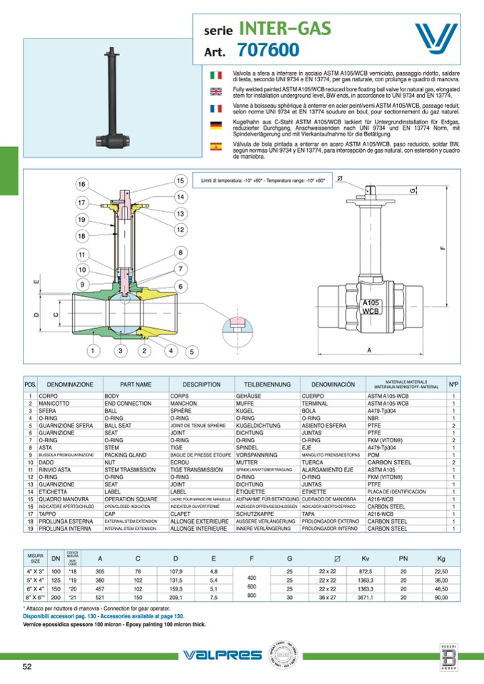 selon norme UNI 9734 et EN 13774 soudure en bout, pour sectionnement du gaz naturel.