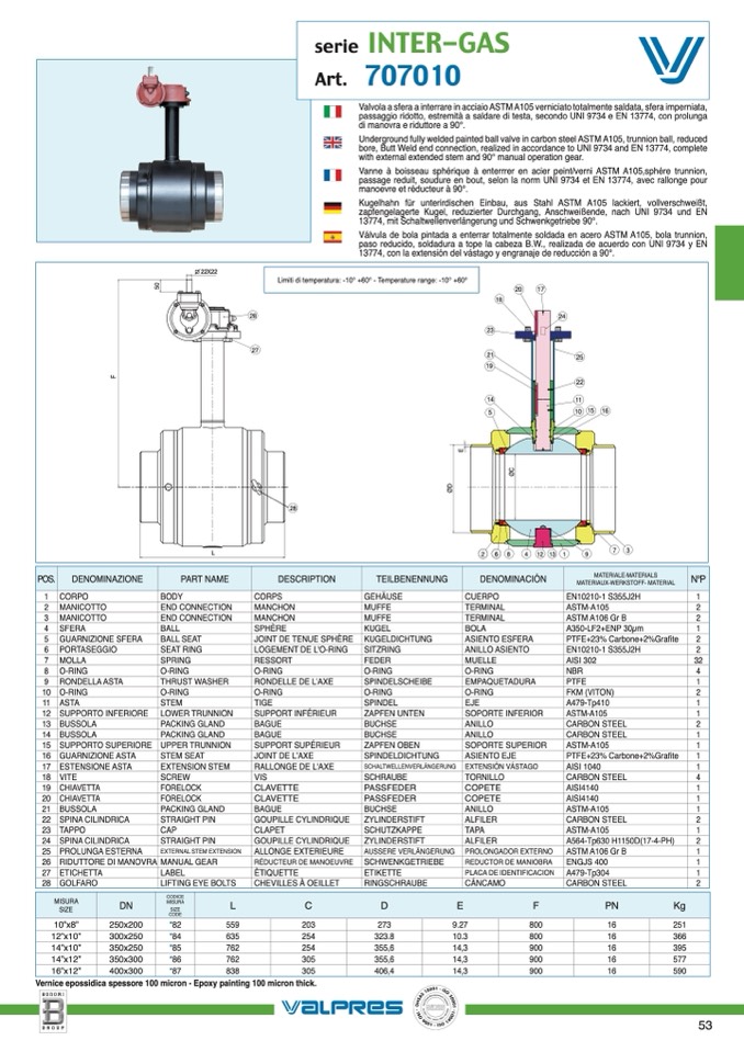 bore, Butt Weld end connection, realized in accordance to UNI 9734 and EN 13774, complete