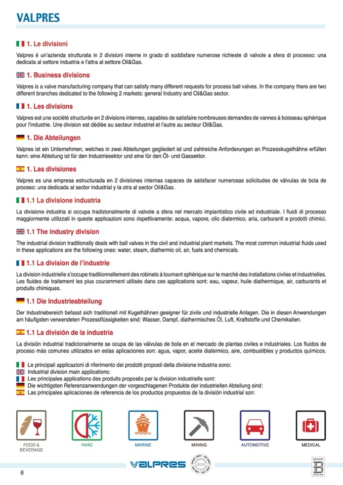 different branches dedicated to the following 2 markets: general Industry and Oil&Gas sector.