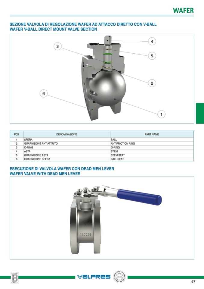 SEZIONE VALVOLA DI REGOLAZIONE WAFER AD ATTACCO DIRETTO CON V-BALL