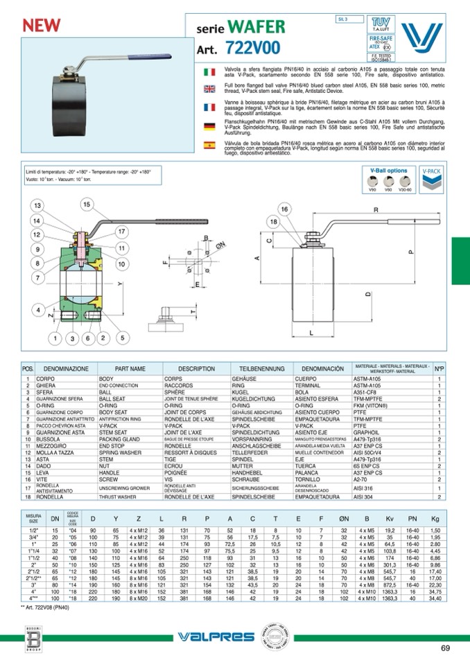 Limiti di temperatura: -20° +180° - Temperature range: -20° +180°