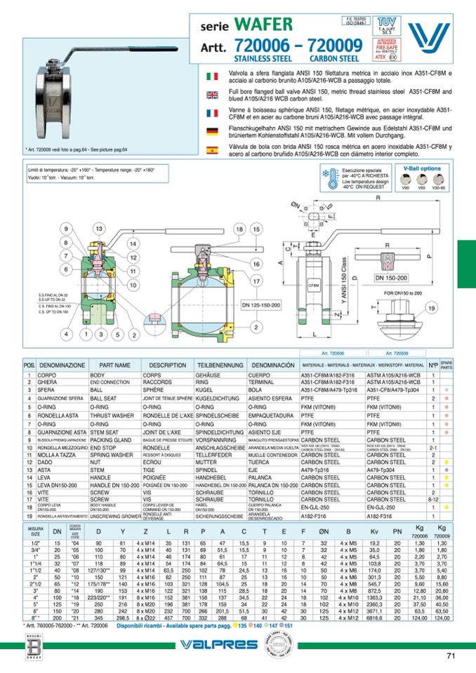 Limiti di temperatura: -20° +160° - Temperature range: -20° +160°