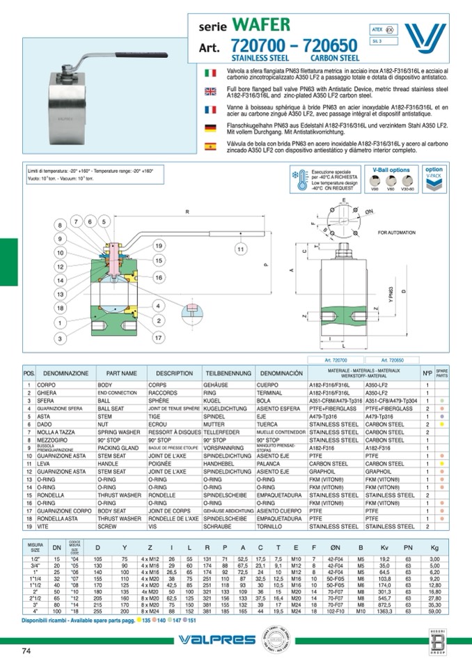 Limiti di temperatura: -20° +160° - Temperature range: -20° +160°