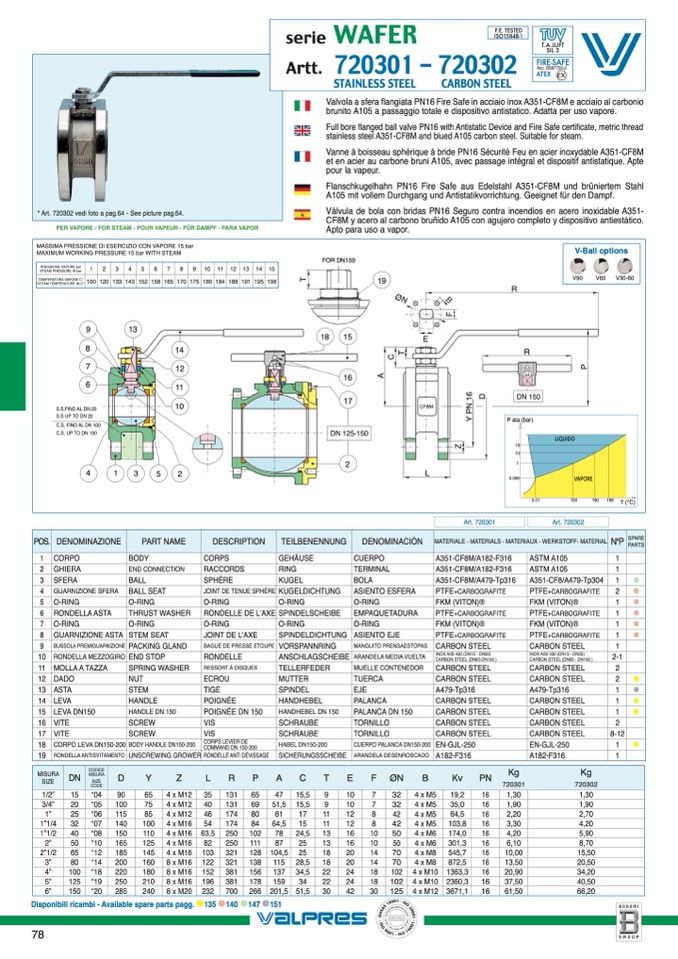 stainless steel A351-CF8M and blued A105 carbon steel. Suitable for steam.