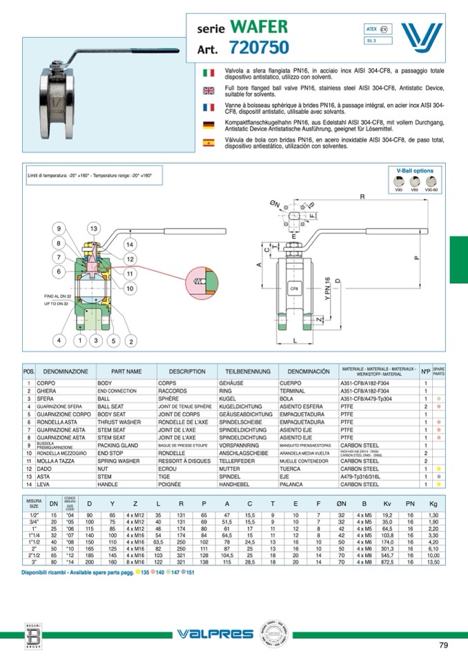 Limiti di temperatura: -20° +160° - Temperature range: -20° +160°