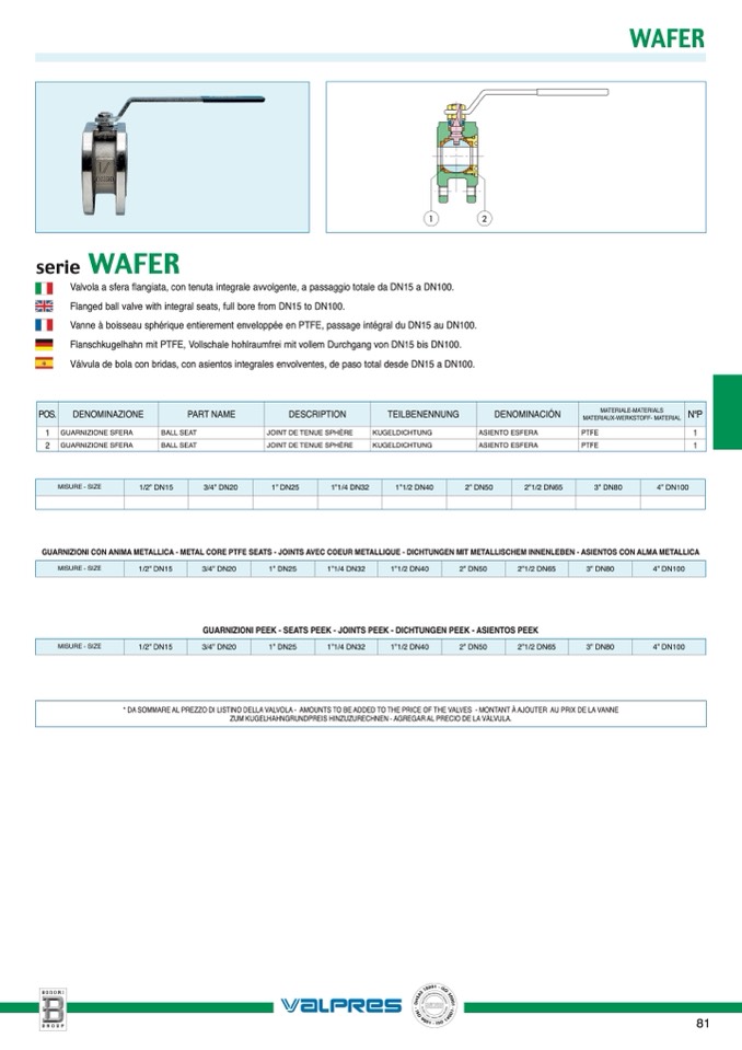 GUARNIZIONI CON ANIMA METALLICA - METAL CORE PTFE SEATS - JOINTS AVEC COEUR METALLIQUE - DICHTUNGEN MIT METALLISCHEM INNENLEBEN - ASIENTOS CON ALMA METALLICA