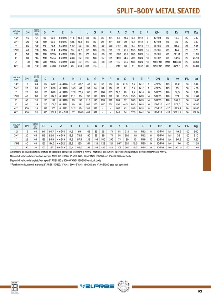 Disponibili valvole da fusione fino a 4” per ANSI 150 e 300 e 2” ANSI 600 - Up 4” ANSI 150/300 and 2” ANSI 600 cast body.