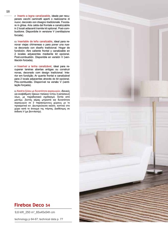 Inserível a lenha canalizável, ideal para re-