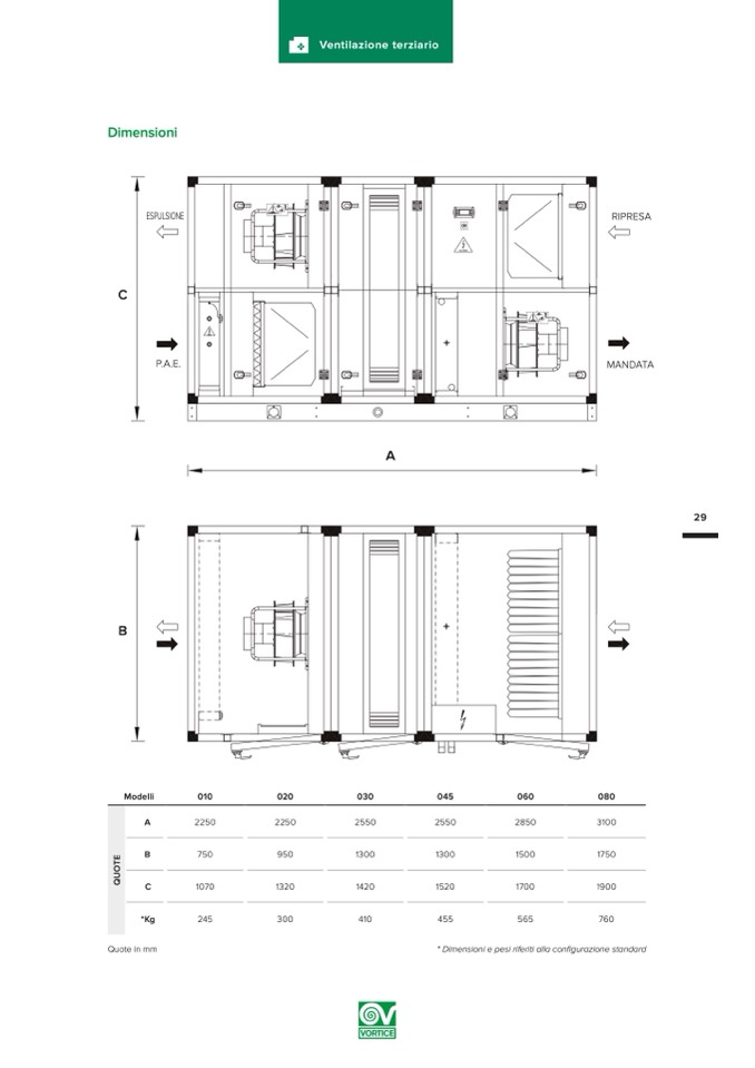 * Dimensioni e pesi riferiti alla configurazione standard