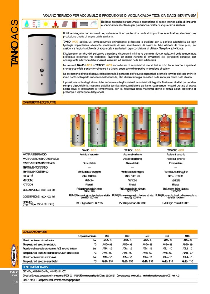Le versioni TANKO-1 ACS e TANKO-2 ACS sono dotate di scambiatori interni fissi in tubo liscio avvolto a spirale di