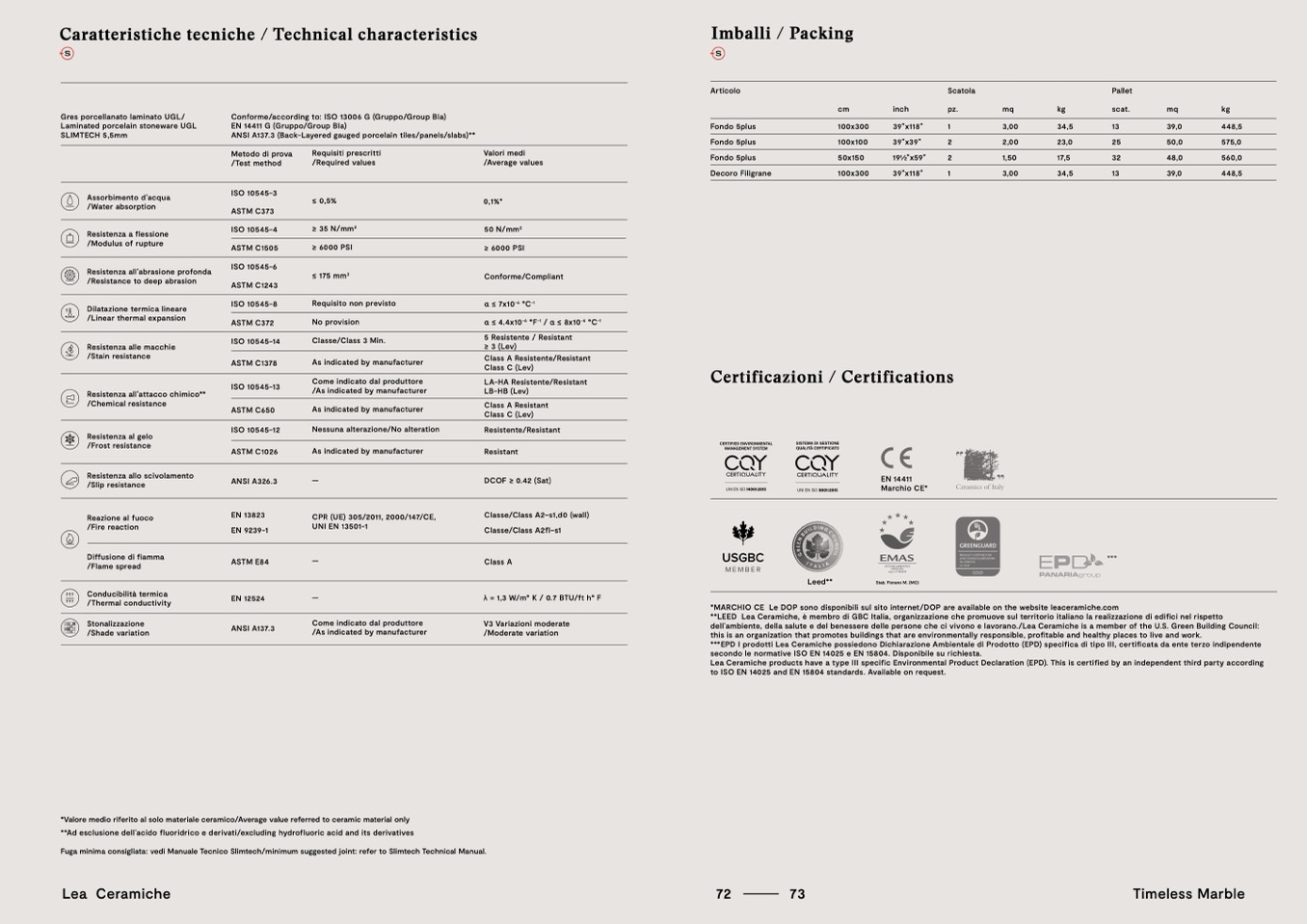 Lea Ceramiche products have a type III specific Environmental Product Declaration (EPD). This is certified by an independent third party according